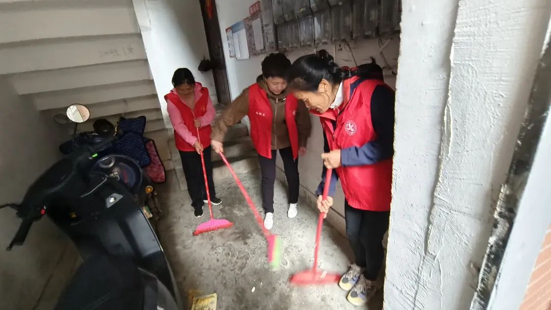 区妇联一行人到彭家桥街道北京西路社区开展“党建+环境卫生大扫除”活动。