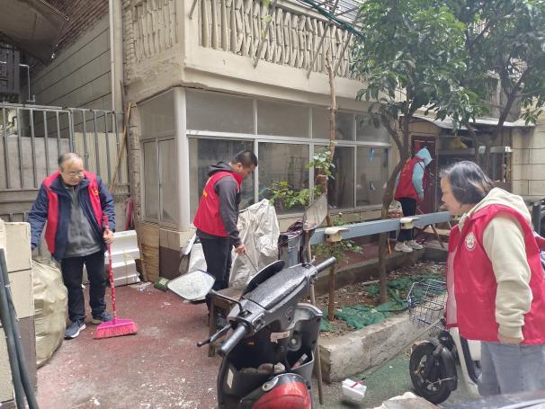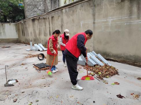 区科协一行人到大院街道体苑社区开展“党建+环境卫生大扫除”活动。