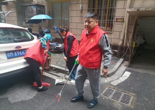 区残联一行人到滕王阁街道子固路社区开展“党建+环境卫生大扫除”活动。