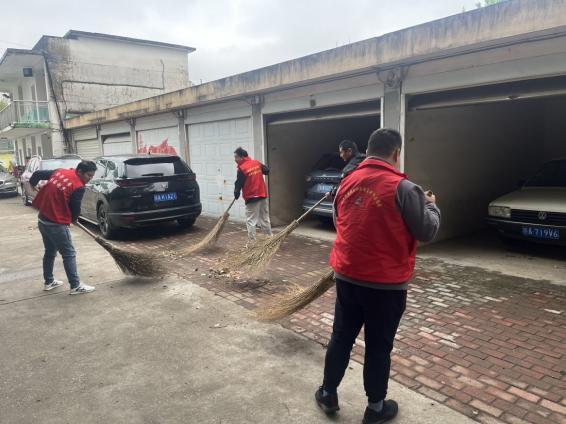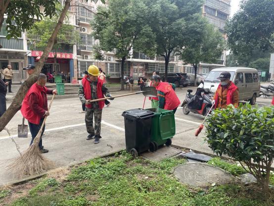 江西赣港物业管理有限公司一行人到滕王阁街道上凤凰坡社区开展“党建+环境卫生大扫除”活动。