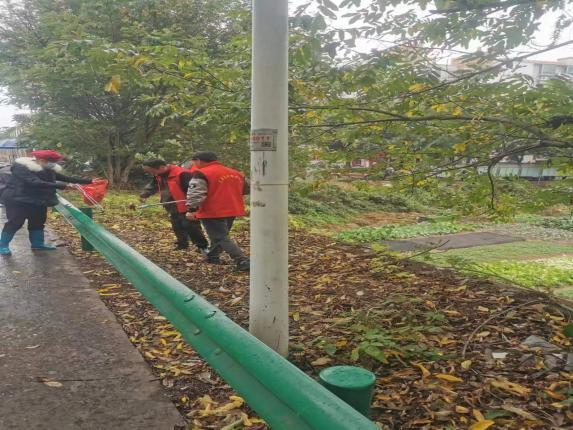 区委政法委一行人到扬子洲镇熊万村开展“党建+环境卫生大扫除”活动。