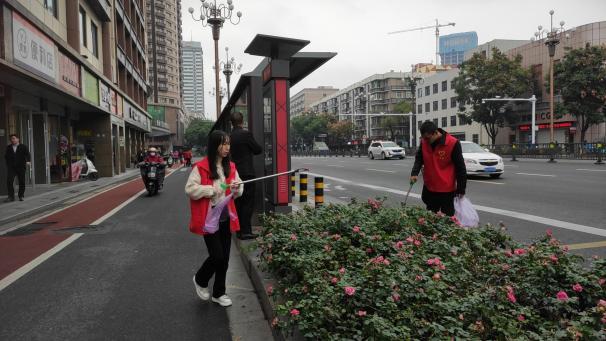 区机关事务管理中心一行人到董家窑街道阳明东路沿线开展“党建+环境卫生大扫除”活动。