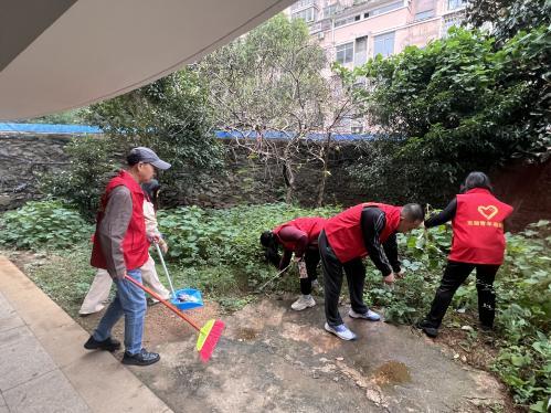 区金融服务中心一行人到墩子塘街道阳明社区开展“党建+环境卫生大扫除”活动。
