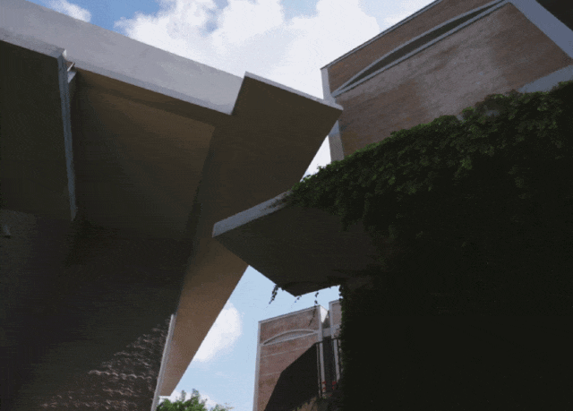 ▲混凝土挑檐,适应广州湿热气候,可以遮阴避雨