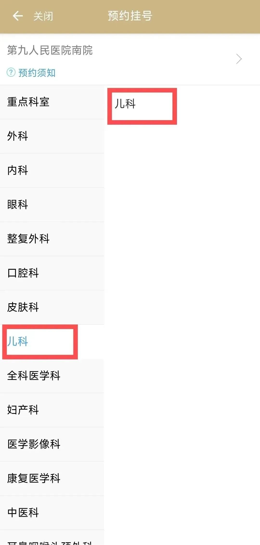 第二步:搜索想去的医院,也可按条件进行筛选(按距离、医院等级筛选),随后点击进入科室页面选择目标科室。