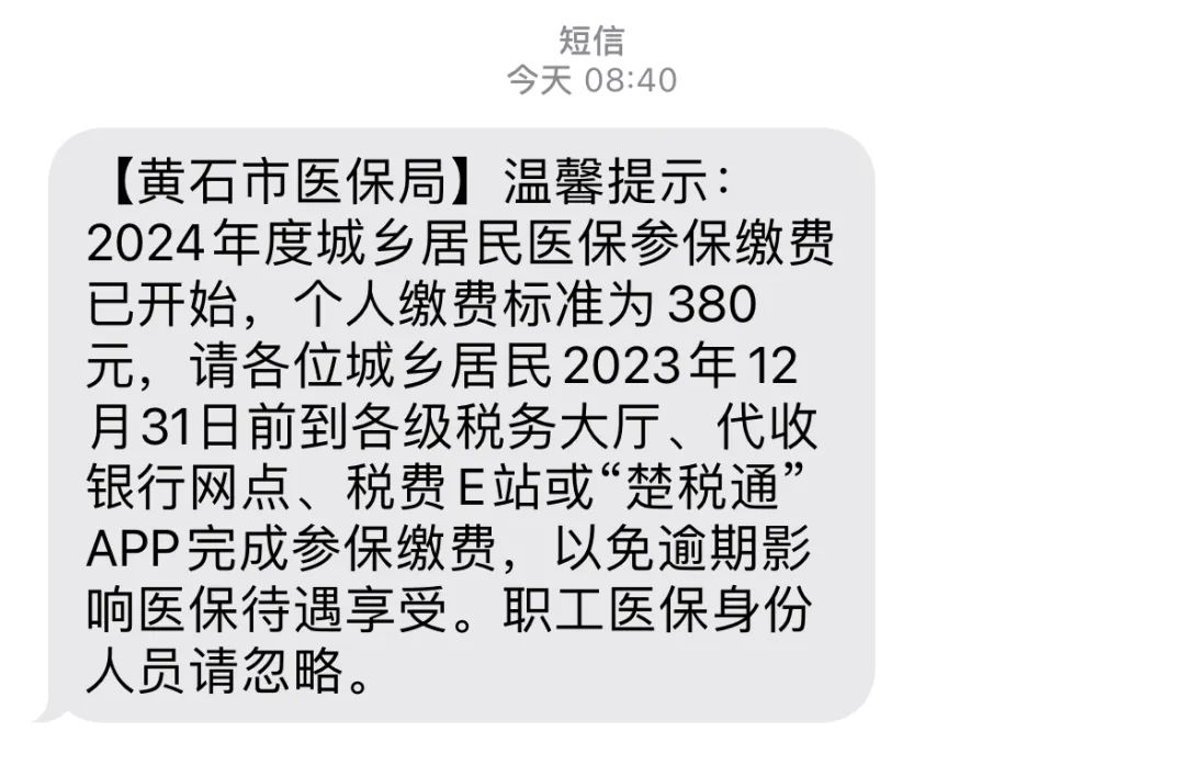 以上信息仅为参保缴费提醒短信看到短信后