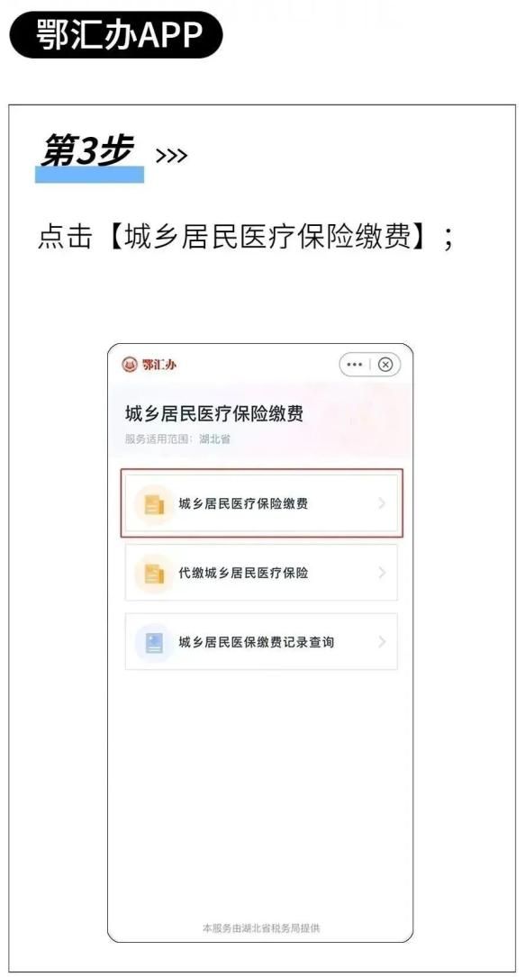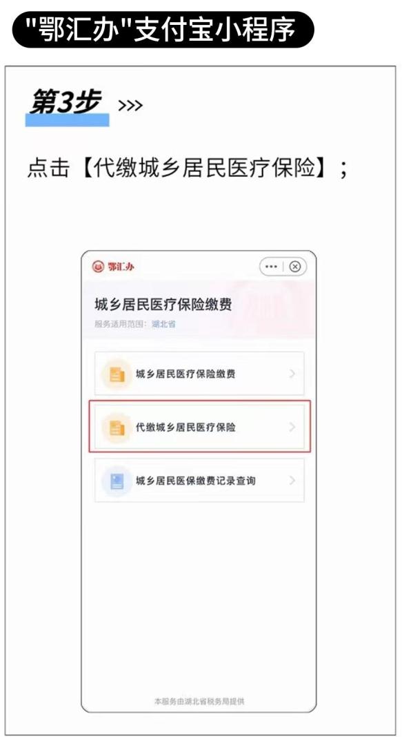 已办理居民医保参保登记的城乡居民,既可通过楚税通APP、鄂汇办APP、“鄂汇办”支付宝小程序、湖北省电子税务局网站、线下税务服务大厅、线下协议代征银行网点等进行个人缴纳,也可通过村、社区、学校代收缴纳。