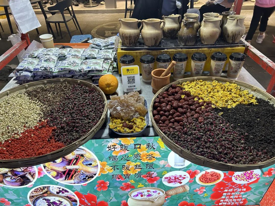 “罐罐烤奶”顾名思义就是用小罐子装的奶茶,记者走访发现,它有一个非常吸引人的特质,就是现场手作。每家摊点上都将玫瑰、茉莉、茶叶、红枣、枸杞、黄冰糖、菊花、薏米等原料展示出来,有的是用木盒分格装好,还有用簸箕装的,原材料不少于10种,牛奶也是带着品牌标识的袋装纯牛奶。