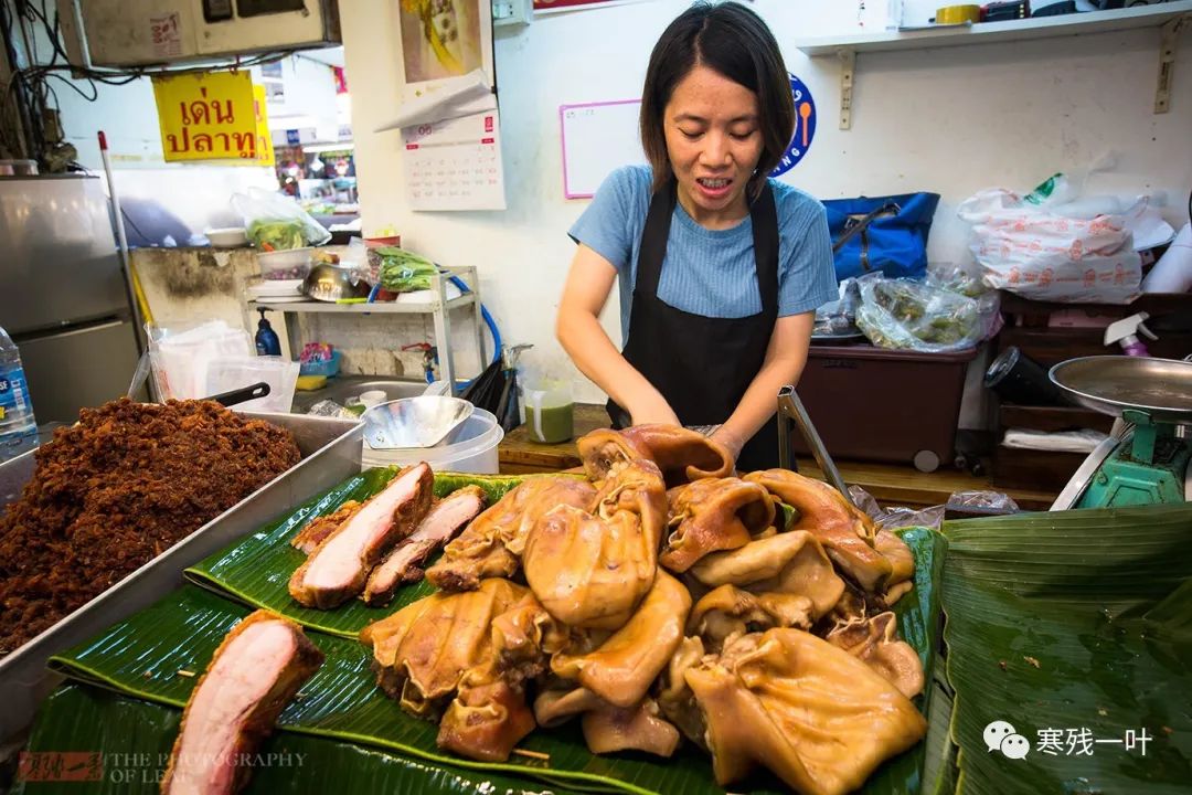 说到熟食,这边还有熟肉类区,主要有烤猪肉、蒸猪头肉以及肉松一类的。在泰国我好像很少看到本地人吃猪头肉,是因为贵还是他们不怎么爱吃,这个不得而知。不过来这里买猪头肉的大多为华裔。