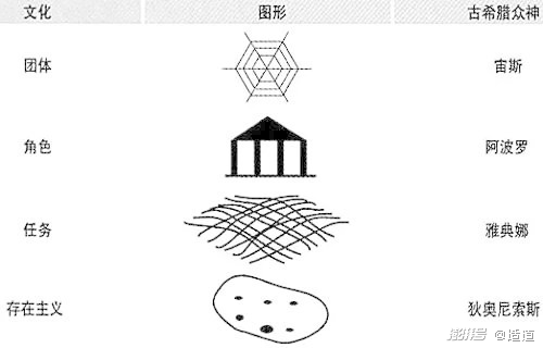 这种文化建立在逻辑和理性的基础上,结构像一座希腊神庙。各个职能部门像神庙的支柱,支撑起整个组织,常见于官僚机构。员工被严格地框定在他们各自的“角色”中,各司其职即可,不需要做出更多贡献。