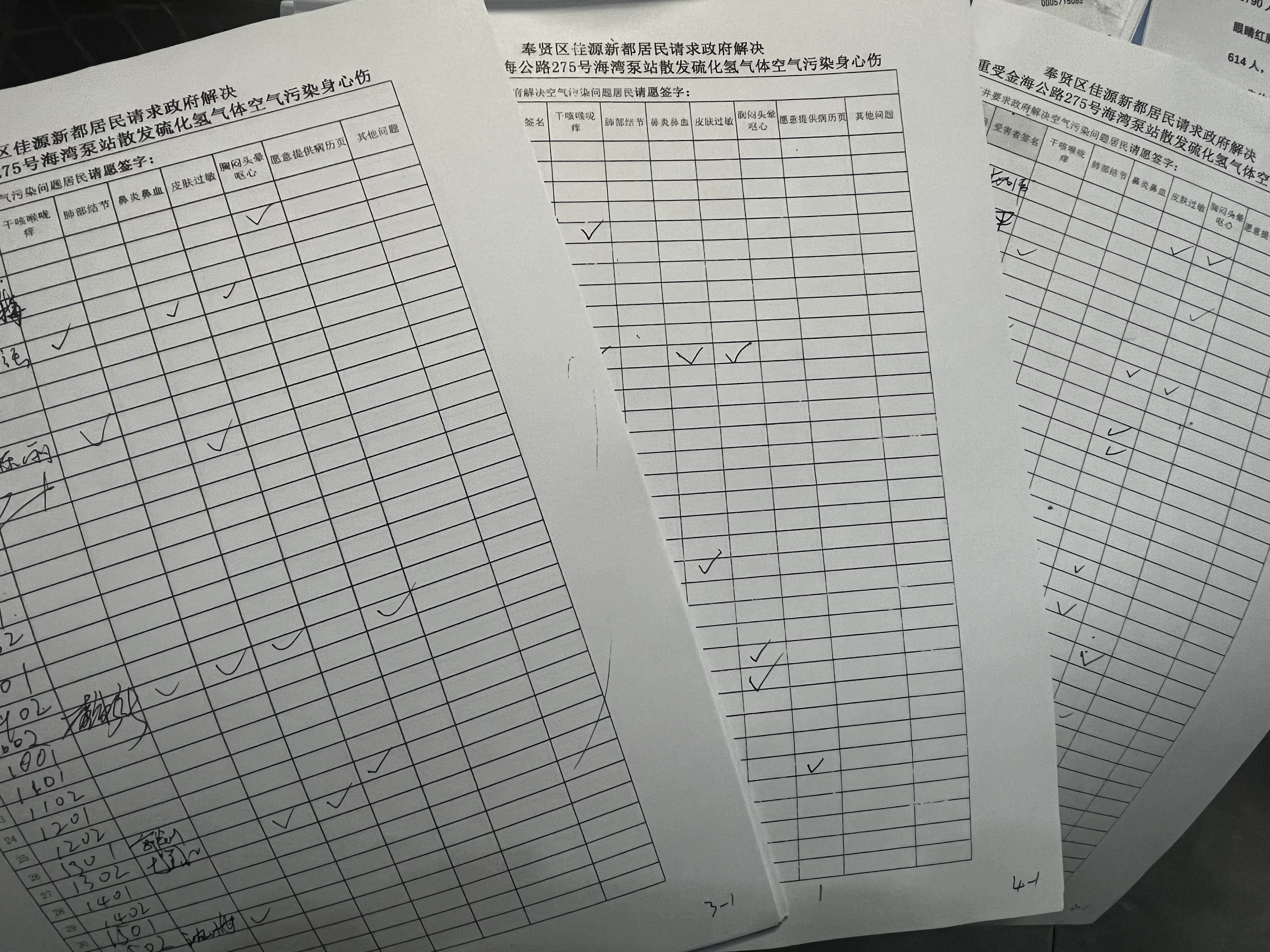 肖女士告诉澎湃新闻记者,小区约有2190户业主,目前有1300多户在此居住。多位居民出现咳嗽、喉痛、肺结节、鼻炎、皮肤过敏等症状,其中33人提供了有关病历报告,检查时间大多集中在今年5-10月。