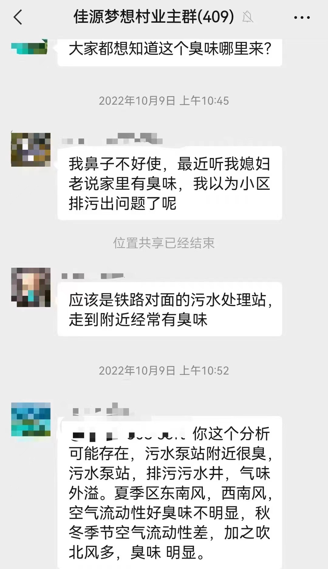 11月14日晚间,仍有小区居民在群内表示闻到臭味 受访者供图