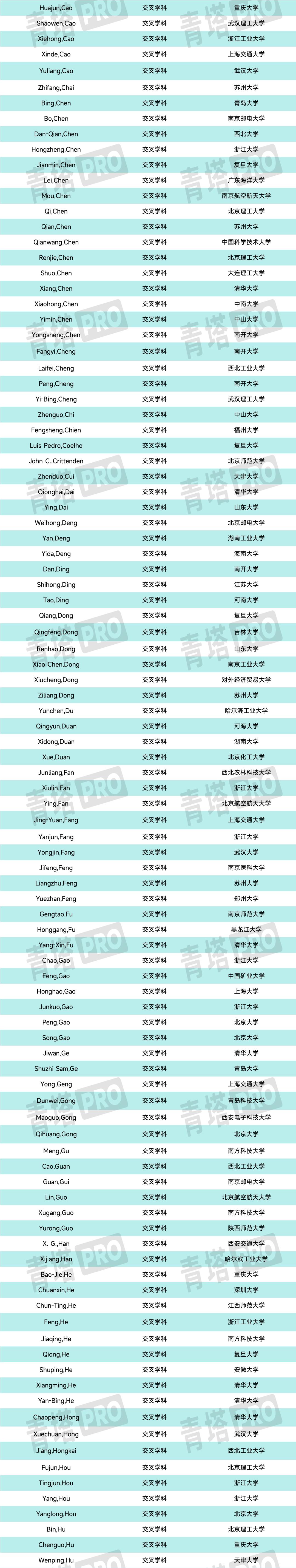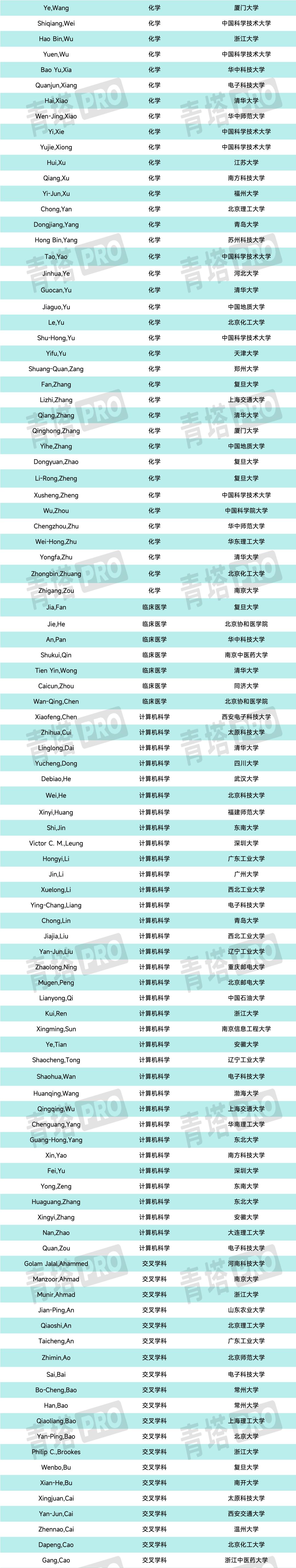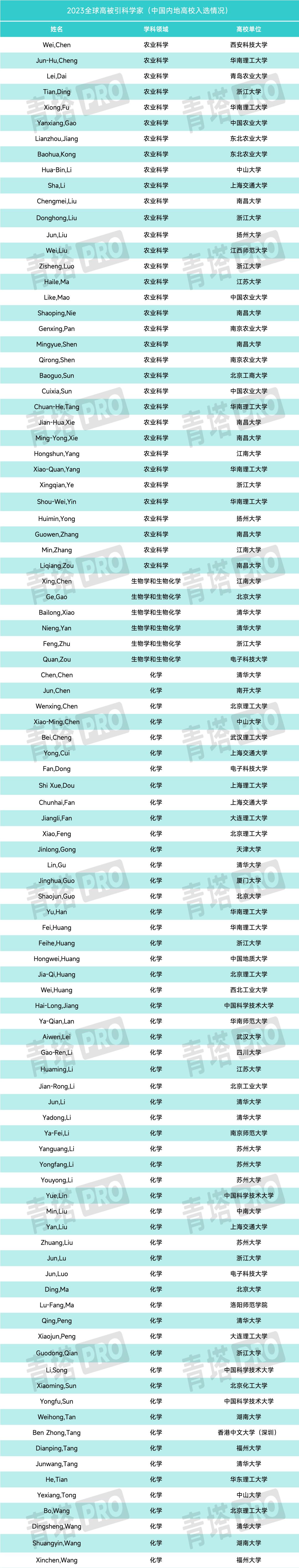 2023年度全球高被引科学家(中国内地高校)详细名单