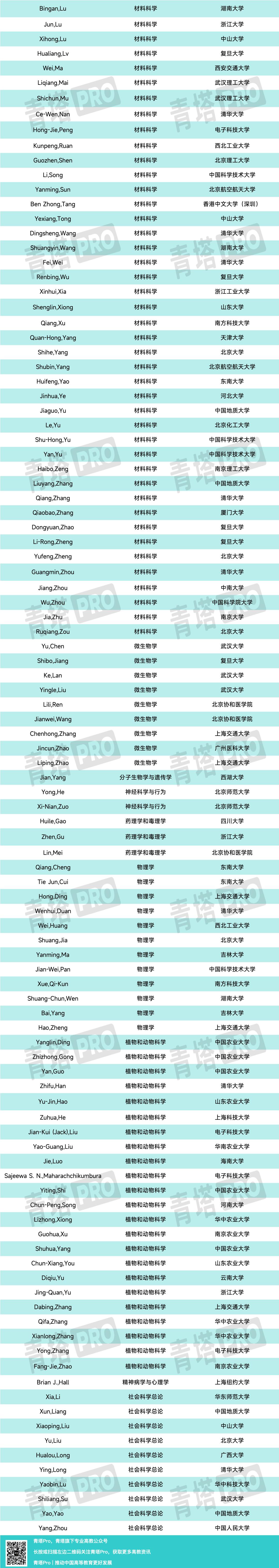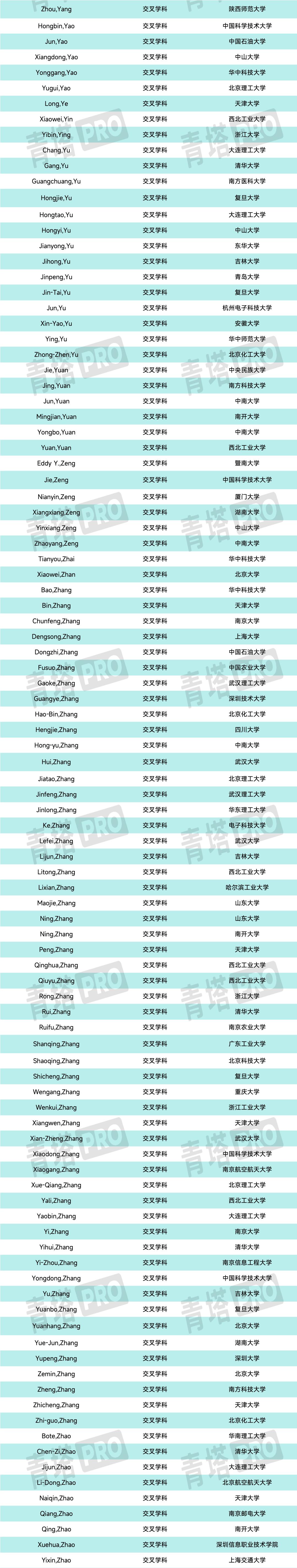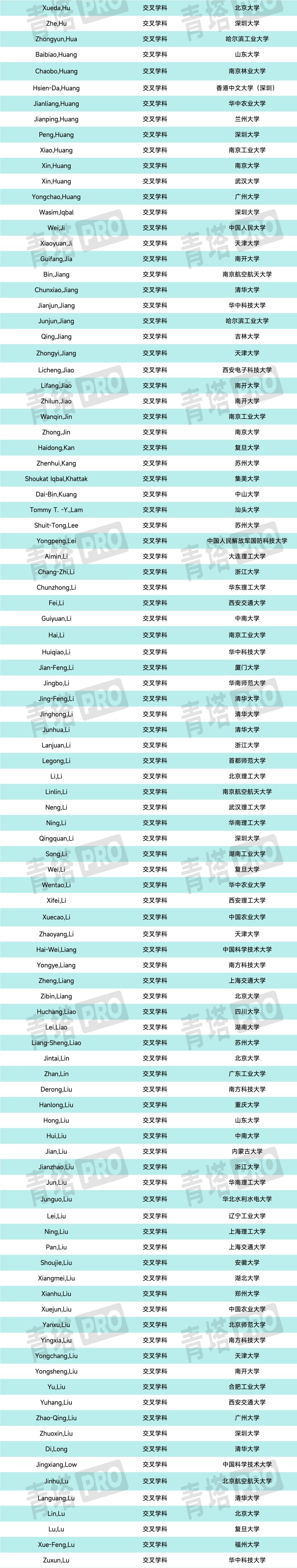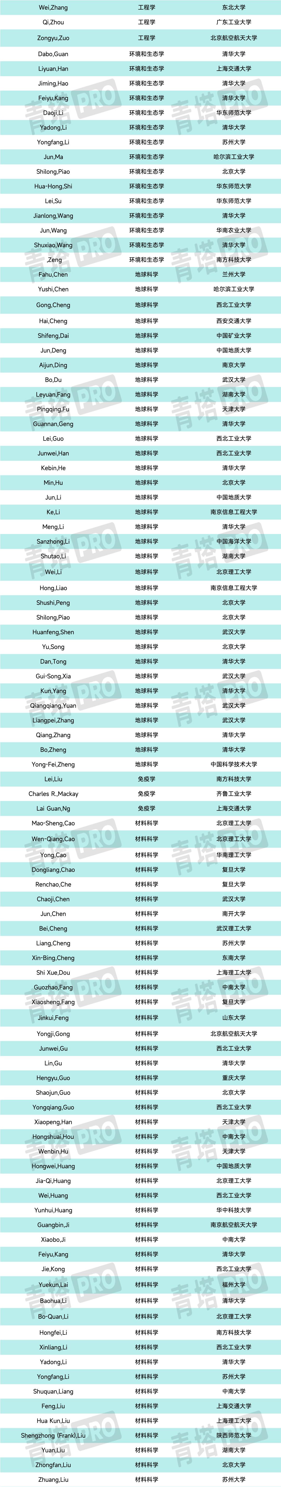 2023年度全球高被引科学家(中国内地高校)详细名单