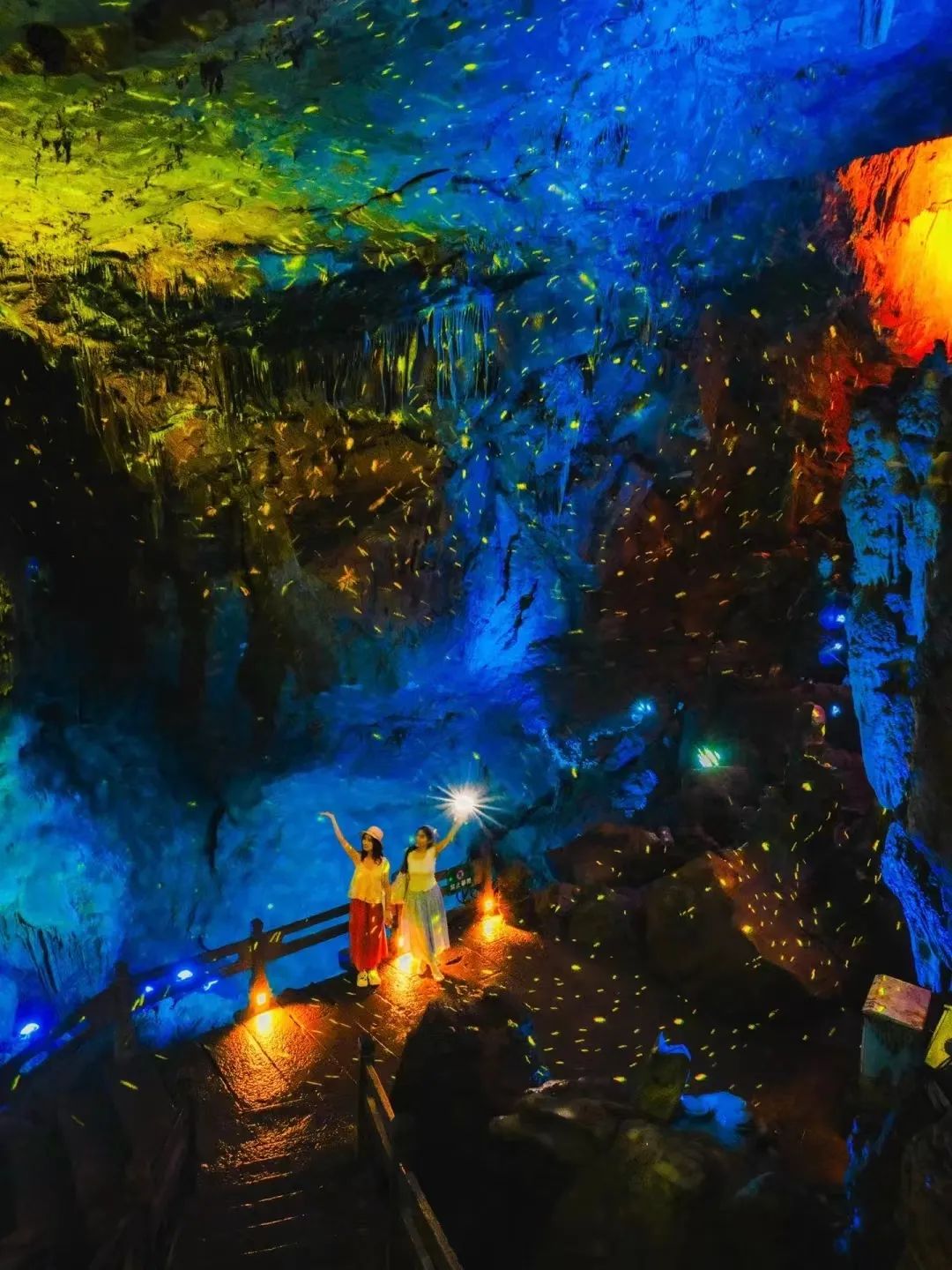 @ 许益这里的灯光实在是奇幻,有时是星星点点的灯光闪烁,像是溶洞中飞起了漫天萤火,有时又是三两鱼群悠游,像是来到了海底世界,不过洞内偏冷,记得多披件衣服哦。