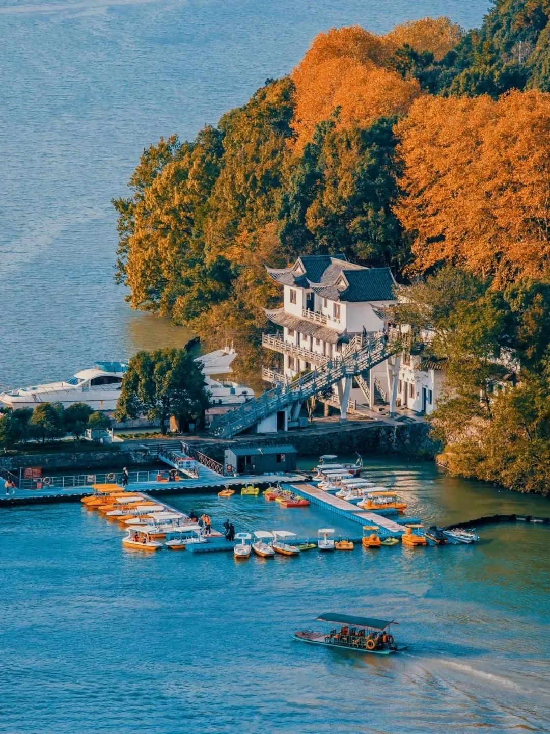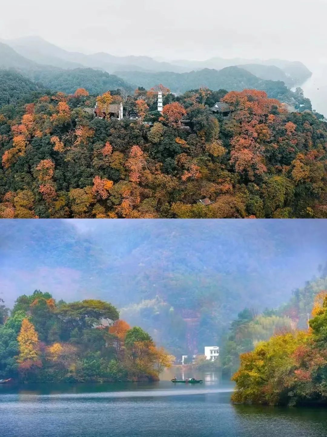 @ 集宿会秋日的富春江,也多了几分静谧,远处是层林尽染,秋水荡漾,近处是泊岸的小船,悠悠归来……与秋日的山水相依,总是有着别样的自在。