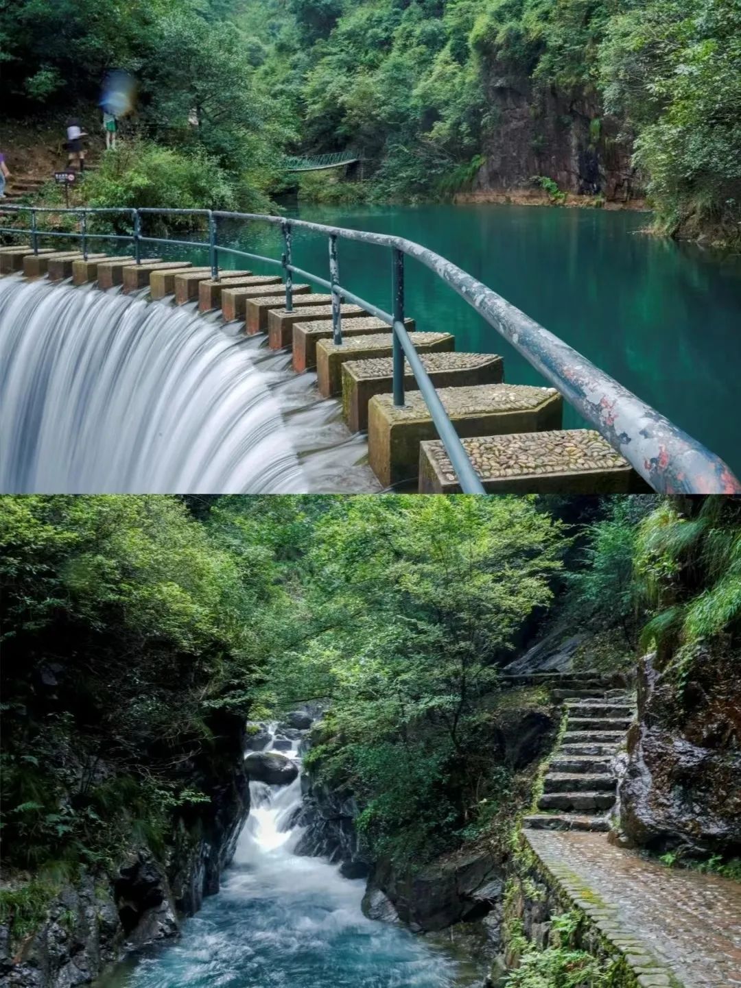 怪石,峡谷,瀑布,溪涧,潺潺流淌的水,汇聚成一方方碧绿剔透的果冻湖,美得让人心颤。