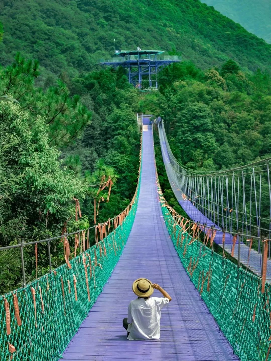 @ 美里酱-你可以坐着魔毯上山,然后去走走紫绫芊手,那是一条悬于山间的长廊,好似一片飘舞山谷的紫色丝带,漫步其上,脚下便是涌动的林木。