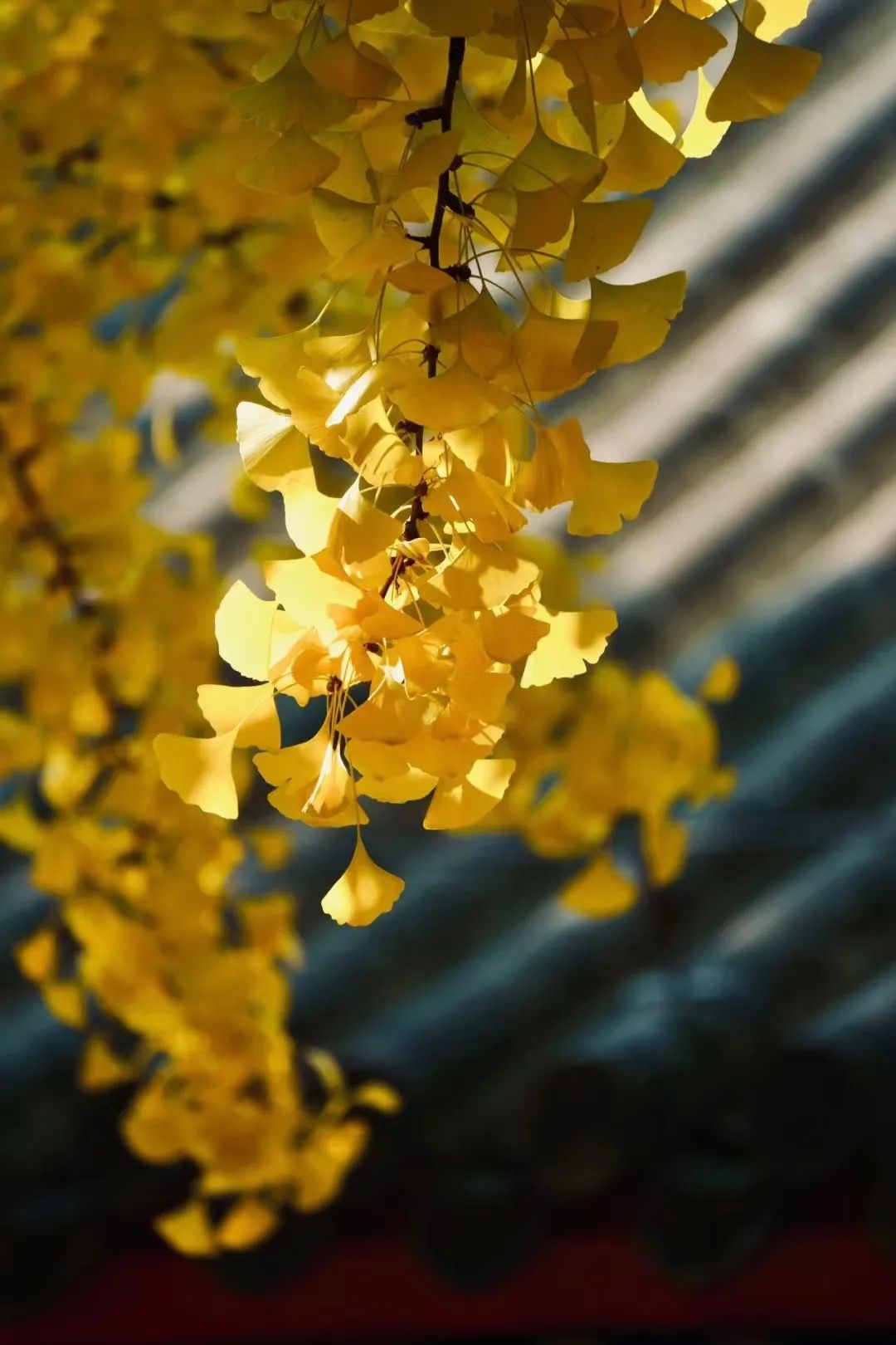 片片的黄叶,在群山间肆意泼洒,在碧水间倒映流淌,在瓦屋下飘零纷飞,像是起舞的蝴蝶,又似秋日的旗帜。