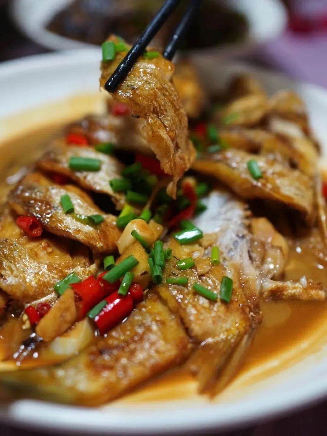 @ 杭州吃什么不少店家也会做上一道红烧鲈鱼,以油略煎一下,淋上咸鲜的酱汁,鱼皮薄薄一层,口感酥香,鱼肉则细腻无比,入口即化,一口气就能吃完整条!