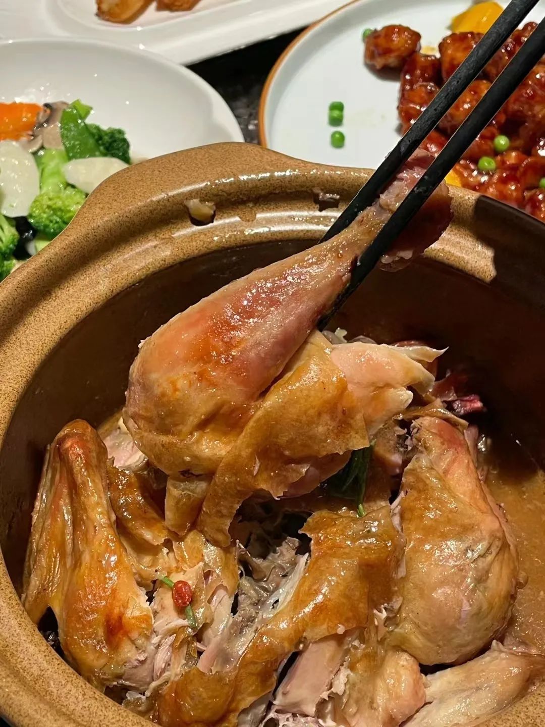 @ 嘉嘉酱阿趁着热乎劲儿,撕下金黄油亮的鸡腿,咬上一口,鸡肉软烂脱骨,咸香中透着丝丝茶香,怎么吃都不腻,还格外地下饭!