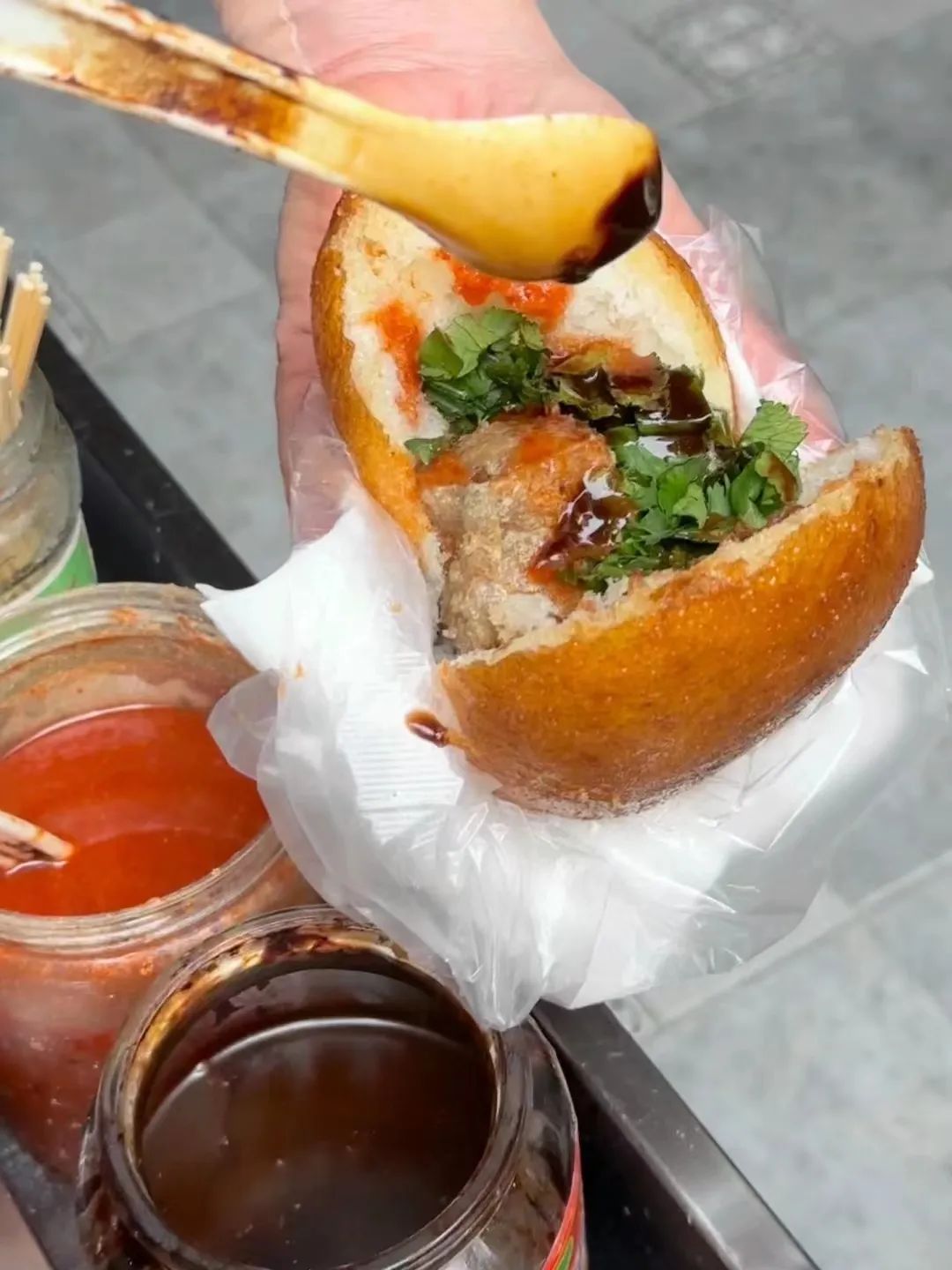 @ 沃里克大街捧在手里边逛边吃,外层的馒头被炸得松松脆脆,里层的臭豆腐绵软喷香,带着酱汁的甜蜜蜜,辣乎乎,口感层层叠加,私心觉得美味不输汉堡!