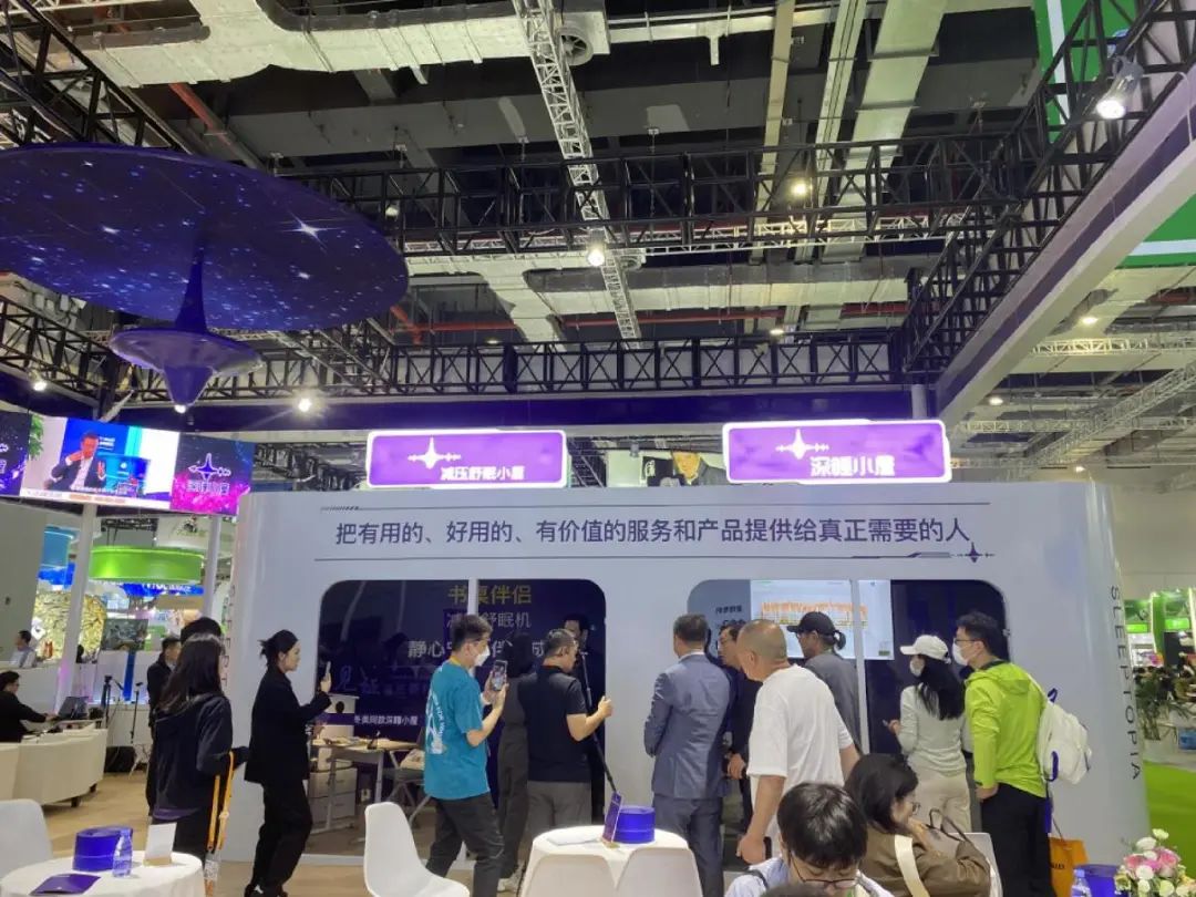 在嘈杂的展会环境中,加拿大科技企业艾纳诗展台的“深睡小屋”,可以让人在15分钟内安心入睡,这吸引了许多“银发族”排队体验。