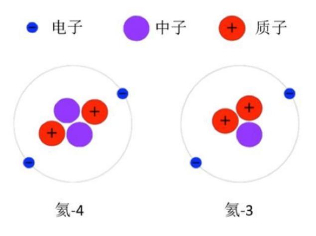 氦气是一种无色无味,密度很小的单原子气体,它的化学性质稳定,不容易与其他物质发生化学反应。氦元素在整个元素周期表中排第二位,根据氦原子核内中子数量的不同,又细分成了多种同位素。地球上,绝大多数的氦原子核都是由两个质子和两个中子组成,也就是氦-4,其比例占到了地球上所有氦元素的99.99986%。此外,氦原子核的另一种稳定结构仅由两个质子和一个中子组成,称为氦-3,其含量仅占0.000137%。