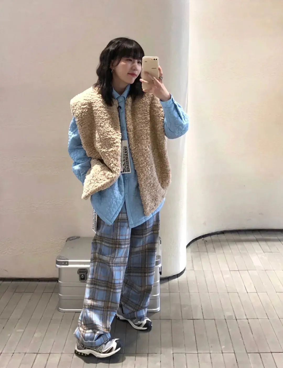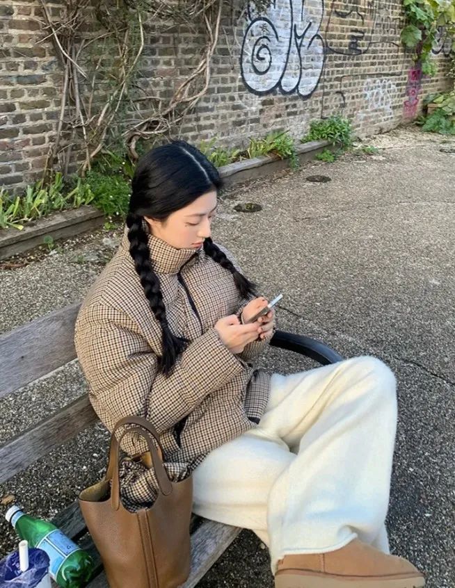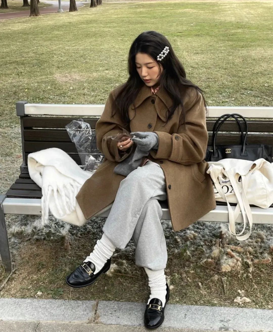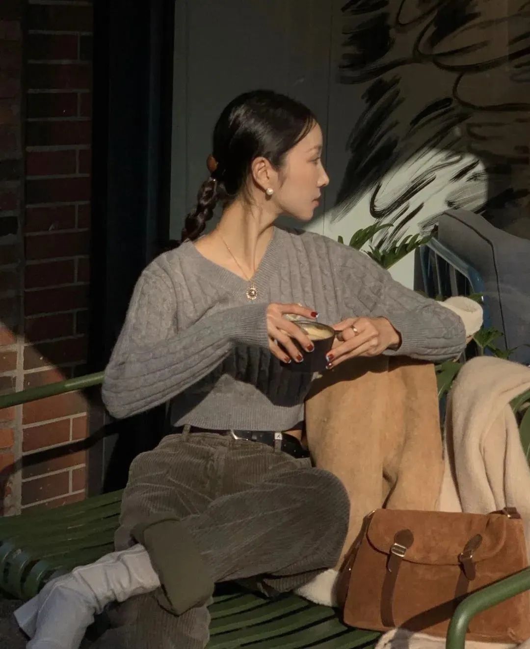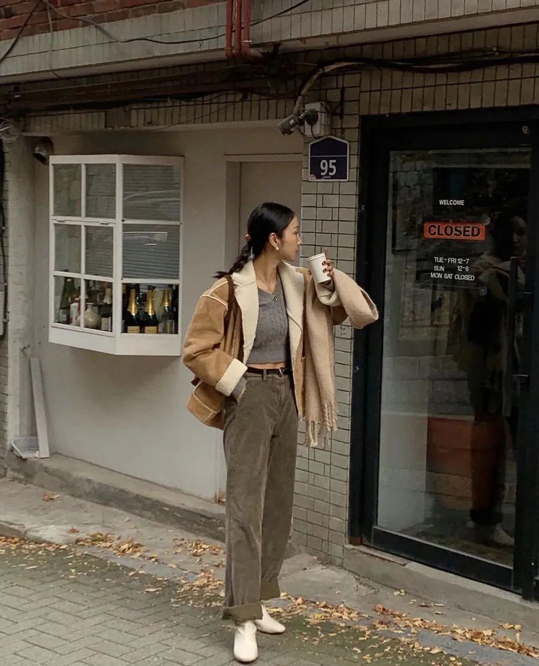 搭配一件麻花毛衣,外面穿一件羊羔毛外套,韩里韩气的氛围穿搭真的很好看!还可以直接搭配一件同色系外套,让整套look更有层次。