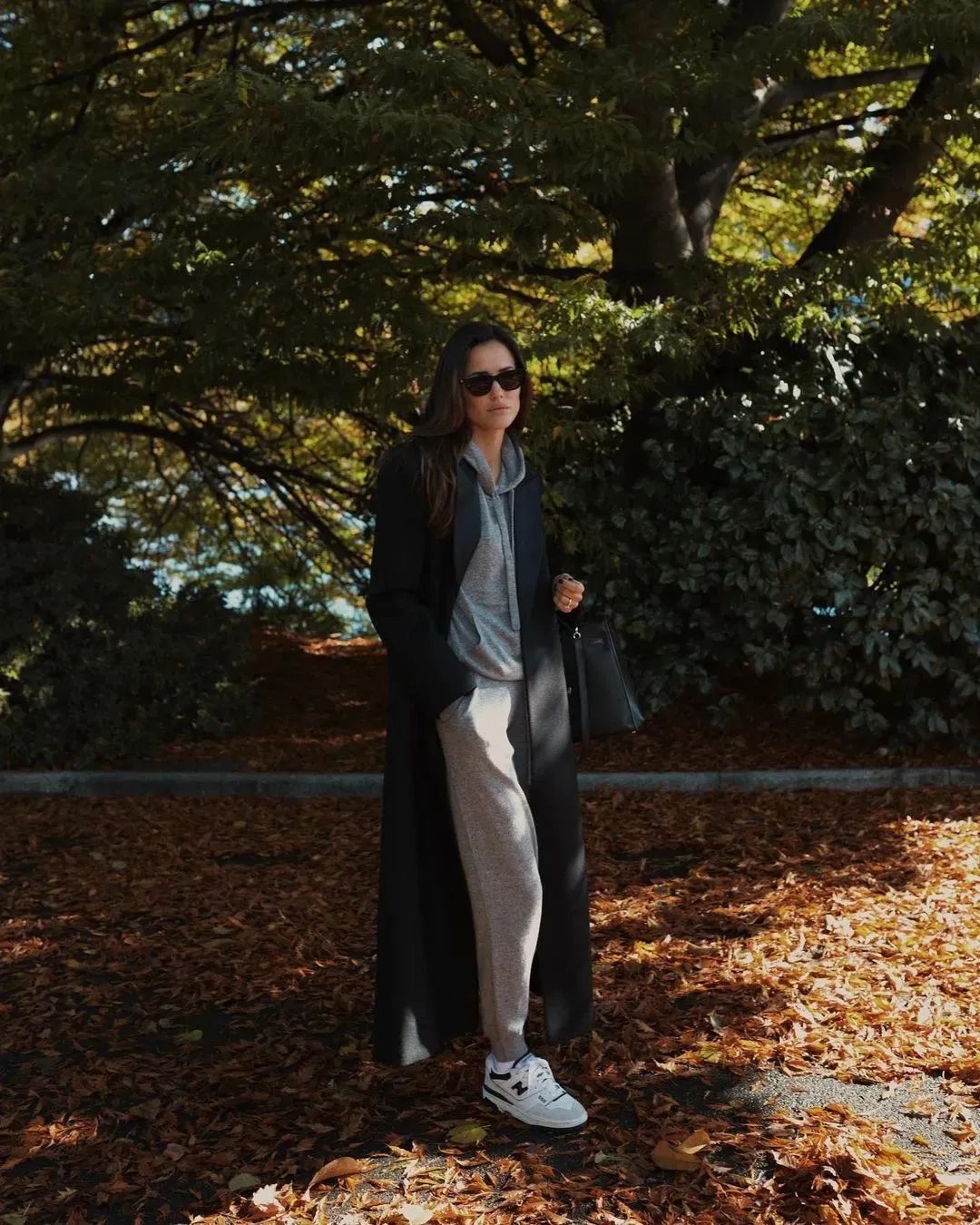 近两年还流行起了运动裤搭配皮鞋的穿搭,前提是外套要选一个偏正式优雅的,这样才能跟皮鞋做一个呼应。