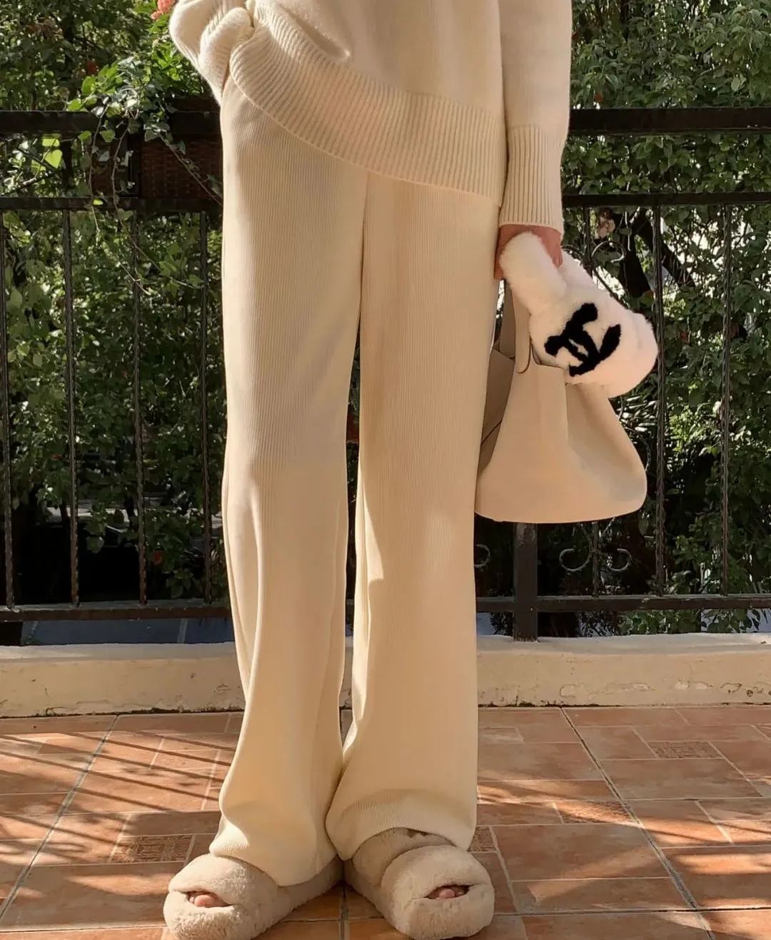 针织糯米裤可以跟一切针织外套、毛衣搭配,省时又方便!