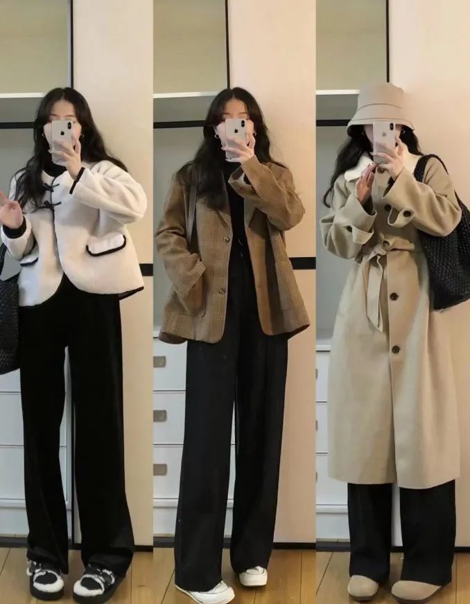 毛呢料子厚实有版型,百搭又时髦,宽松点也不会显胖,藏肉一流。