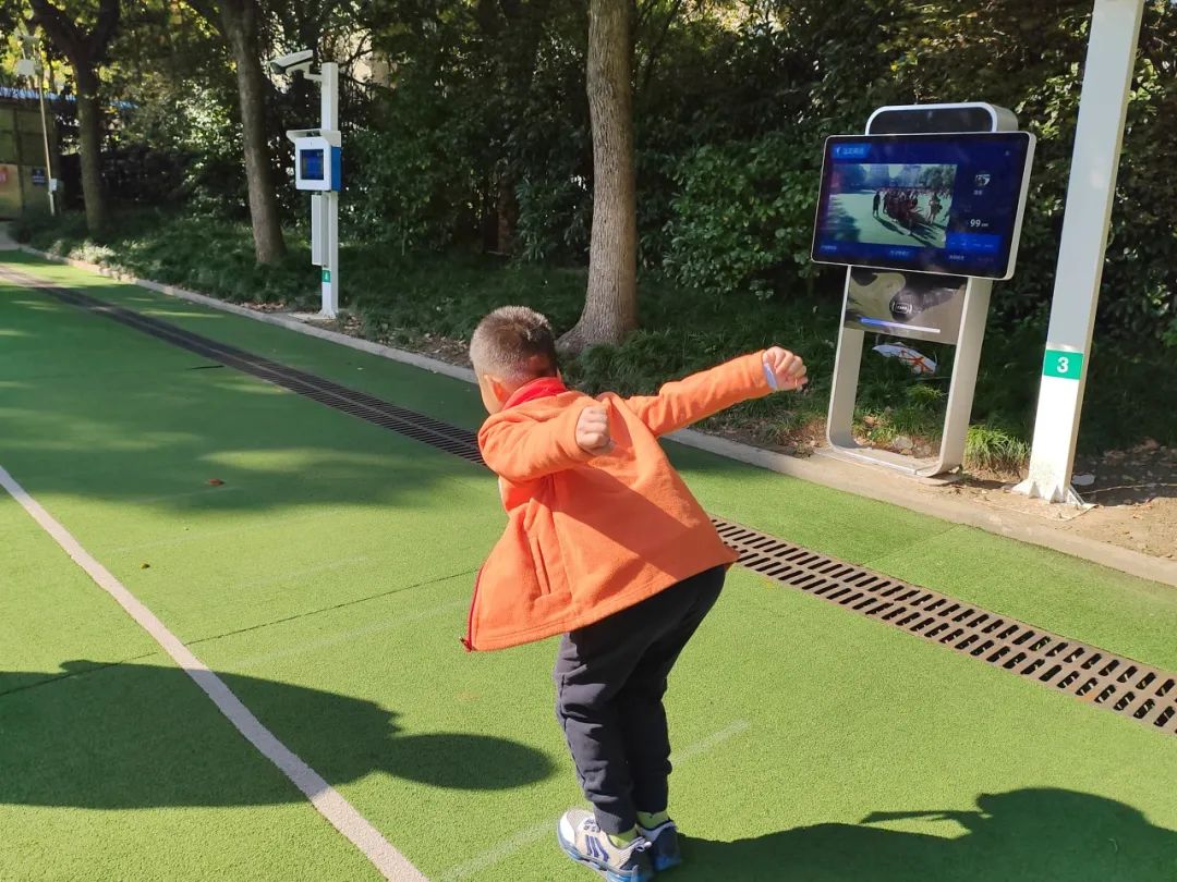 目前,长宁路小学在操场上共设有五台智慧体育电子屏,包括四台测试屏和一台教学屏,可以进行立定跳远、跳短绳、仰卧起坐、50米等测试项目,还可以进行AI健身学习互动。除了体育课堂,这些智慧体育屏幕还将在“智慧大课间”中发挥作用,“时刻待命”供课间活动的学生们使用,保障同学们达到“校内每天体育活动时间不少于1小时”的标准。