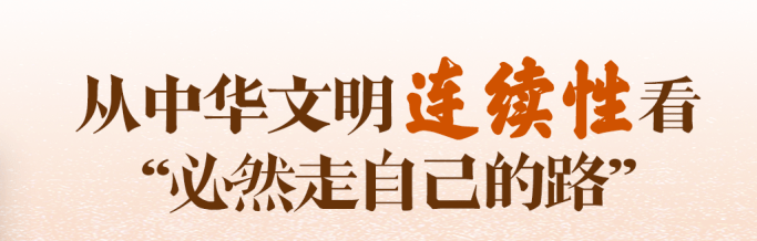 中华文明的连续性从根本上决定了中华民族必然走自己的路。具有突出的连续性的中华文明,为中华民族生生不息、发展壮大提供了丰厚滋养。能看到多远的过去,就能看到多远的未来。习近平总书记指出:“如果没有中华五千年文明,哪里有什么中国特色?如果不是中国特色,哪有我们今天这么成功的中国特色社会主义道路?”中国特色社会主义是实现中华民族伟大复兴的必由之路,是在对中华民族5000多年悠久文明的传承中走出来的,是中国共产党领导人民历尽千辛万苦、付出巨大代价取得的成就。新时代新征程,脚踏中华大地,传承中华文明,走符合中国国情的正确道路,我们具有无比广阔的舞台,具有无比深厚的历史底蕴,具有无比强大的前进定力。习近平总书记指出:“中国式现代化是赓续古老文明的现代化,而不是消灭古老文明的现代化;是从中华大地长出来的现代化,不是照搬照抄其他国家的现代化;是文明更新的结果,不是文明断裂的产物。”面向未来,深刻把握中华文明具有的突出的连续性,在实践创造中进行文化创造,在历史进步中实现文化进步,我们就一定能赓续历史文脉、谱写当代华章,为强国建设、民族复兴注入不竭精神动力。