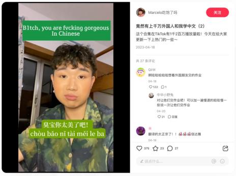 (source:小红书)你穿汉服,我教汉语。一位葡萄牙区博主通过别具一格的中文教学火出圈,成为了几百万外国网友的中文老师,甚至有些明星都被粉丝安利了博主的课。
