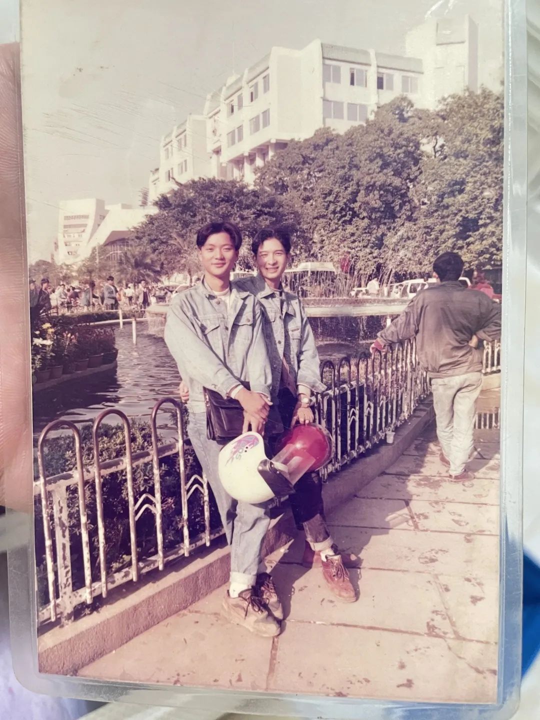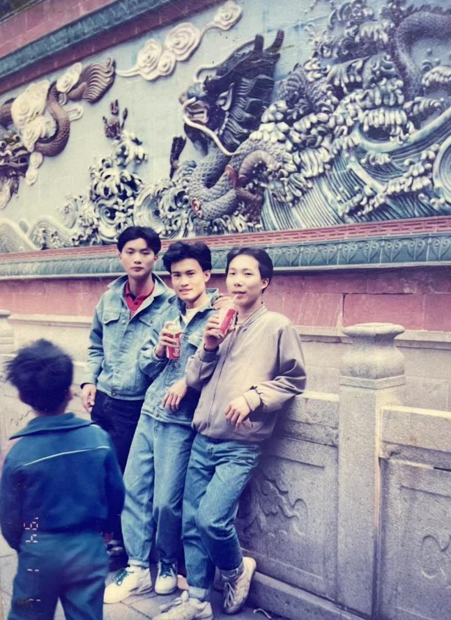 左图是1994年元旦,阳光明媚,我和几个同事相聚在祖庙。在祖庙双龙壁前,我们欢笑着,一位同事拿出相机咔嚓一声将这个难忘的瞬间定格。两个同事手中提着可乐,笑得合不拢嘴,仿佛这些气泡饮料也变得更加美味。这一年我20岁,一转眼29个年头过去了,岁月匆匆,希望大家归来仍是少年。右图是1994年和同学在袓庙门口水池拍照留念。——禅城发布粉丝朋友黄金德投稿