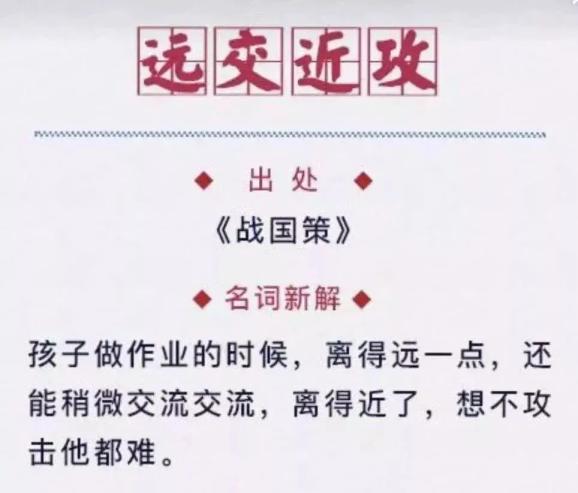 前段时间,家长们的朋友圈中出现一条让人忍俊不禁的成语——远交近攻。