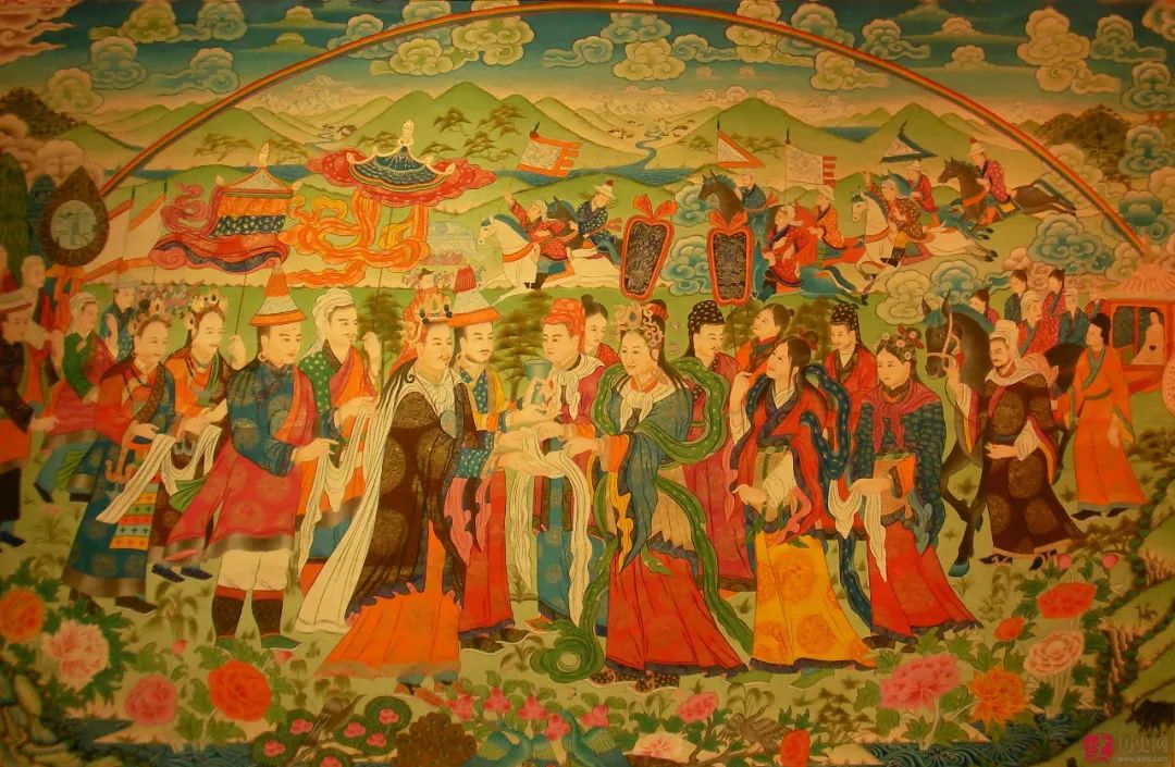 ▲描绘文成公主进藏的壁画,图中左为松赞干布,右为文成公主,图源:网络。