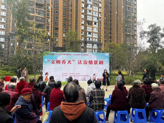 在龙泉街道滨河花园社区,类似的“文明养犬”法治情景剧活动也在群众身边展开。现场志愿者还通过摆放宣传展架、发放宣传资料等多种方式,向广大居民科普被狗咬伤后的应急处理方式、狂犬病相关知识、犬只收容管理等内容,让居民知晓“文明养犬”的重要性。
