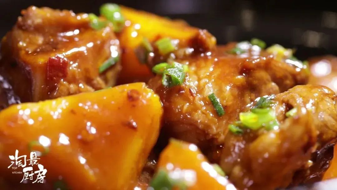 这道南瓜焖排骨,看似简单的操作,但每个细节都是经过大厨精心考量的,南瓜切多大、蒸多久最佳、肉怎么做到酥嫩入味且不柴……