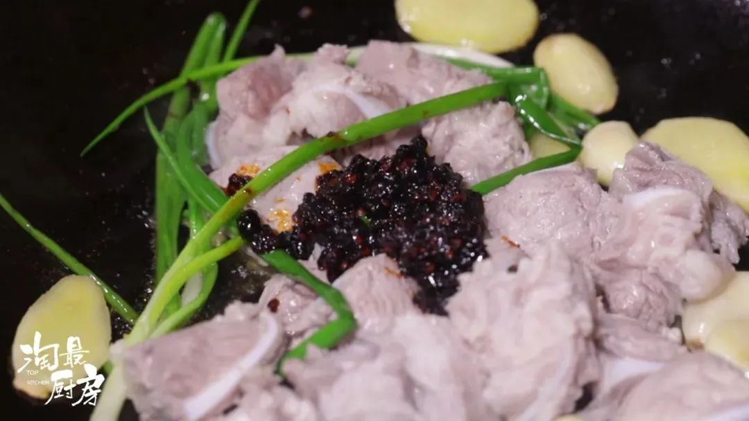在网上搜索可直接购买加入3调羹(45g)鸡枞菌豆豉酱翻炒。