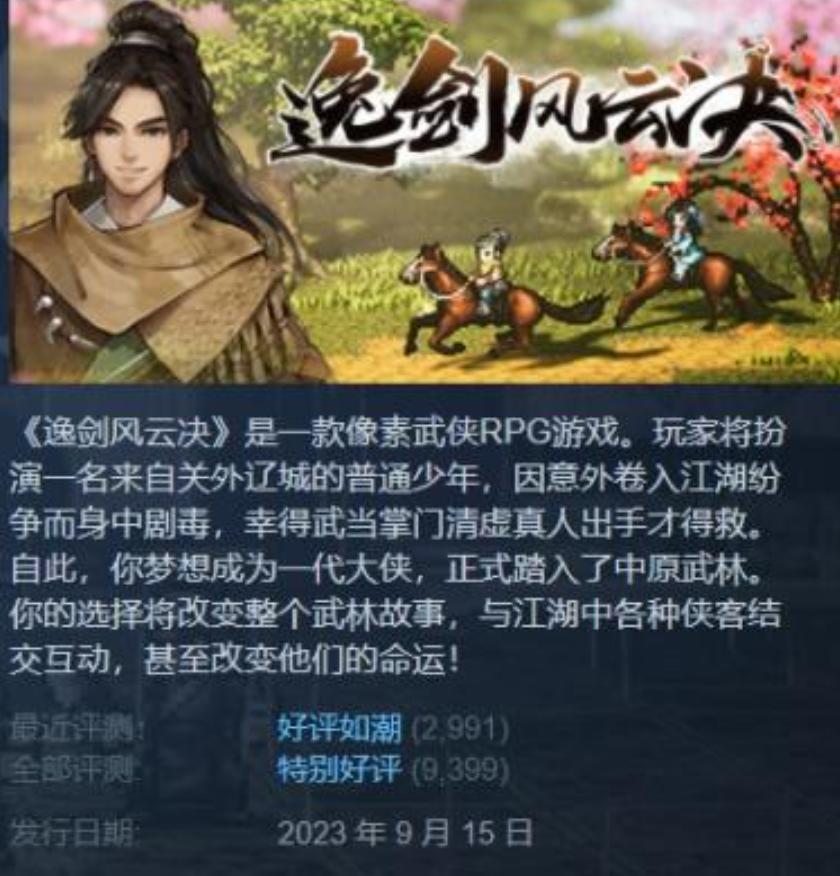 但应该没多少人注意到,九月中旬,一款名为《 逸剑风云决 》( 下简称逸剑 )的国产独立游戏,在 steam 悄悄上线了。