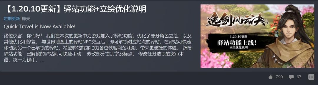 目前,逸剑已经根据玩家的反馈更新了10个版本。最新的版本更新就在11月13日。游戏体验也变得越来越好。