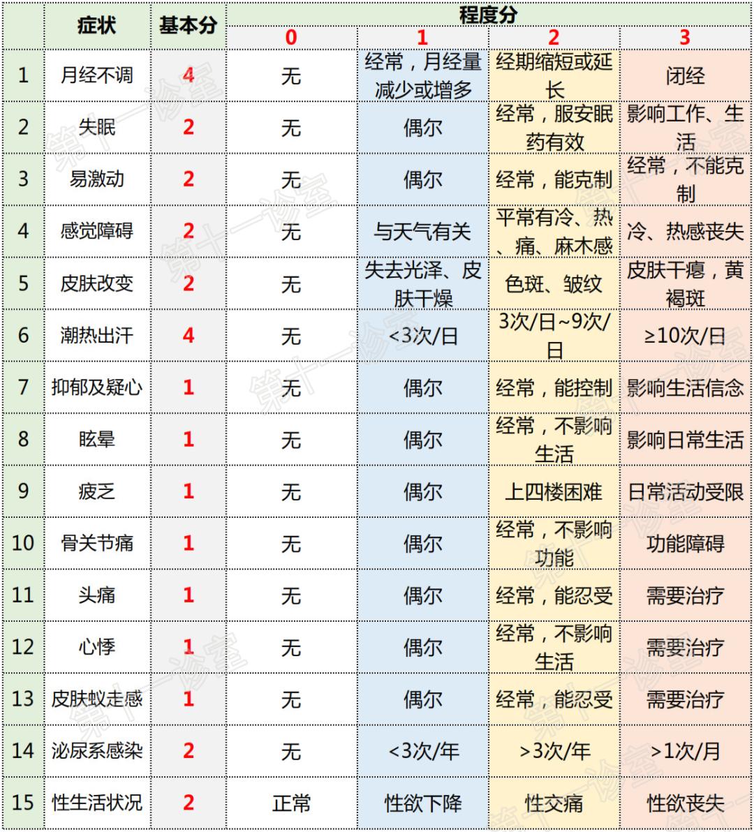 ▲图片来源:第十一诊室自制使用说明:评分的计算方法是各项症状的基本分与程度评分的乘积之和。