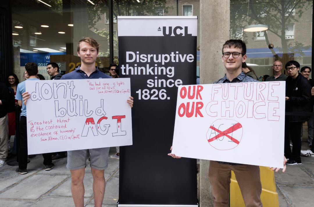 △奥特曼在伦敦参加活动时,街上出现抗议人工智能的示威者。天才外表下的不安全感