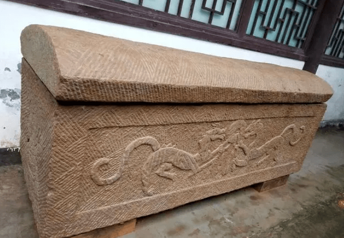 合江县发现的东汉石棺,上刻“龙虎戏壁图”(图片来源:红星新闻)