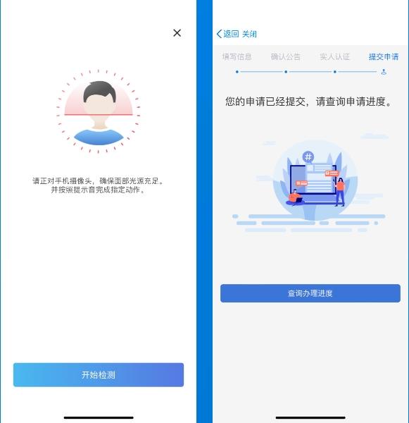 通过实人认证后即可完成申请提交。