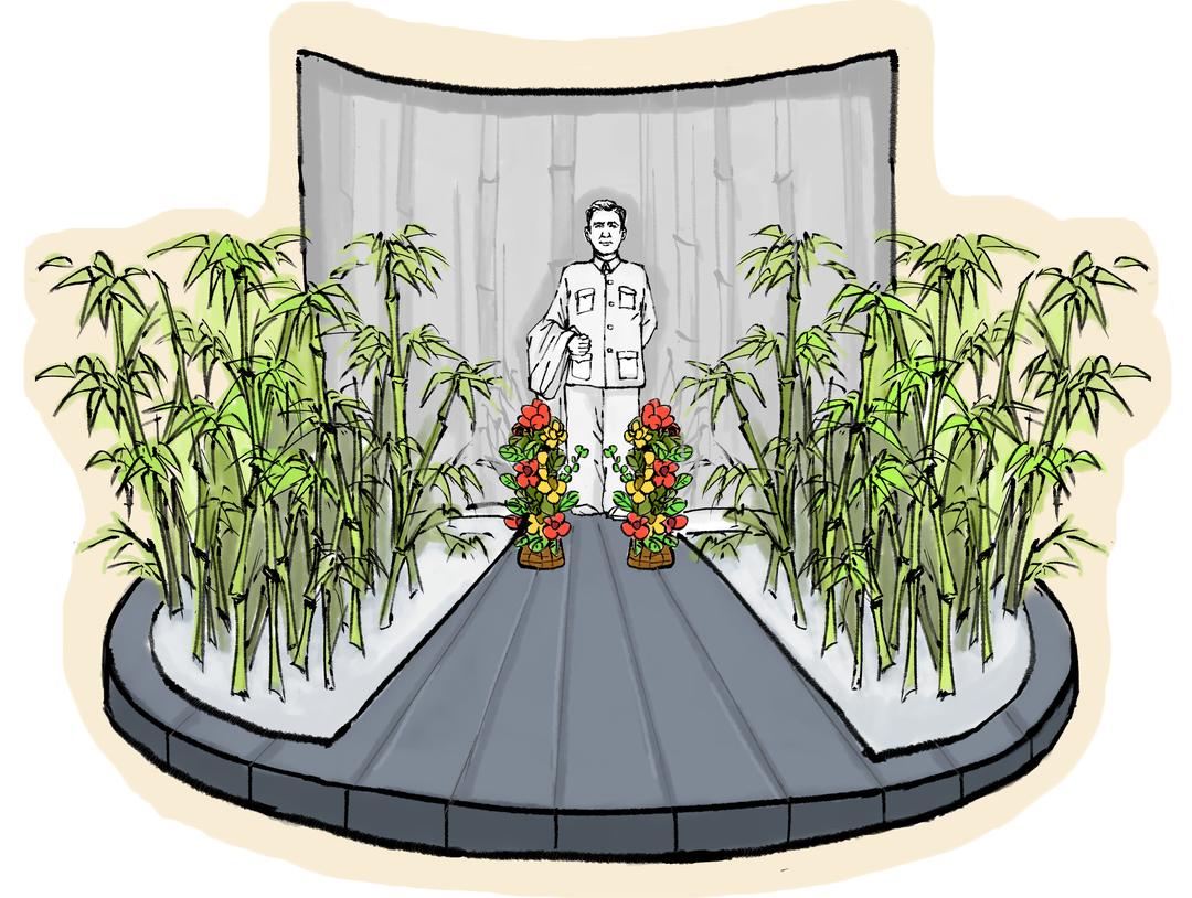 汉白玉雕像序厅正中的汉白玉雕像是20世纪五六十年代陈云爷爷主持财经工作的光辉形象,雕像的背景为雨后春笋