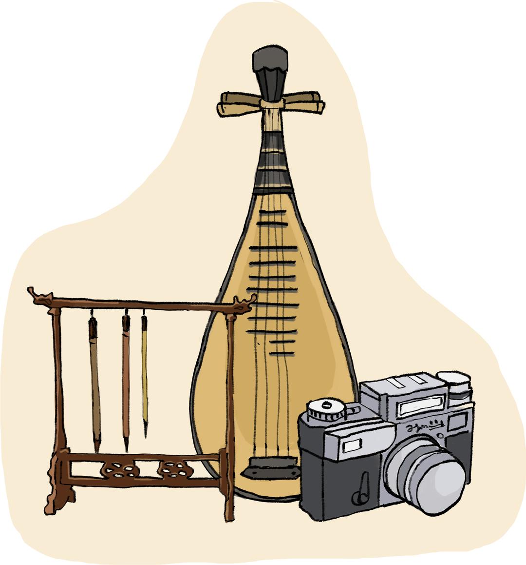 简谱反写的琵琶陈云为了方便练习把简谱反向标注在琵琶上,对着镜子自己练习,这样镜子里的简谱就正过来了