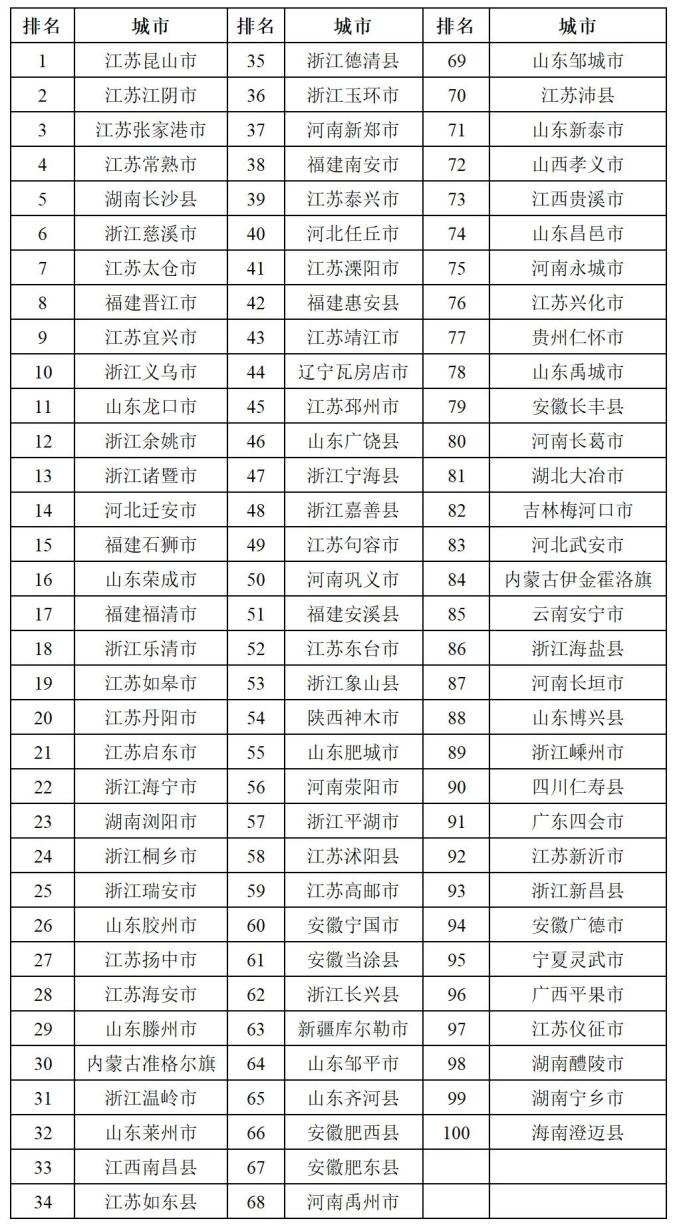 近日,中国中小城市发展指数研究课题组、国信中小城市指数研究院对外发布2023年中国中小城市高质量发展指数研究成果,并发布了2023年度全国综合实力百强县市、全国综合实力百强区、全国绿色发展百强县市、全国投资潜力百强县市、全国投资潜力百强区、全国科技创新百强县市、全国新型城镇化质量百强县市等系列榜单。